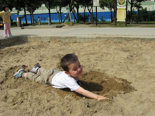 Near the end, Michael started playing with another little boy around his own age, and that boy's older brother, who enjoyed practicing his limited English on Michael. Michael had tonnes of fun until they started playing monsters, which sent Michael crying to me. I reminded him that if someone does something he doesn't like, to just put out his hand and stay "Stop!" So, he went off and tried it, and guess what? It worked. Mommies are geniuses.
